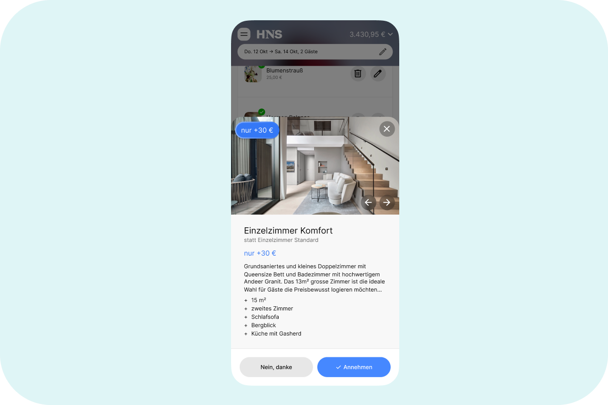 „Seit der Implementierung haben wir vor allem eine deutlich höhere Stimmigkeit zwischen unserem Markenauftritt und der Buchungsstrecke festgestellt. Der Übergang von unserer Markenwelt zur Buchung ist nun fließend und konsequent im Branding gehalten. Das schafft Vertrauen und sorgt für ein durchgängiges Erlebnis. Dadurch konvertieren Gäste verlässlicher und entscheiden sich häufiger für die Direktbuchung anstelle einer Buchung über OTAs.“
